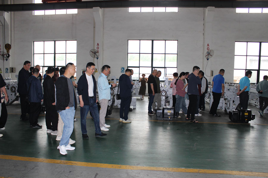 隨后,客人們來(lái)到天一紅旗紡機(jī)車(chē)間對(duì)天一紅旗紡機(jī)展開(kāi)實(shí)地考察,從裝配車(chē)間、倉(cāng)儲(chǔ)、先進(jìn)的加工中心、智能?chē)娡烤€、全過(guò)程質(zhì)量把控、成品庫(kù)等,做了全方位了解