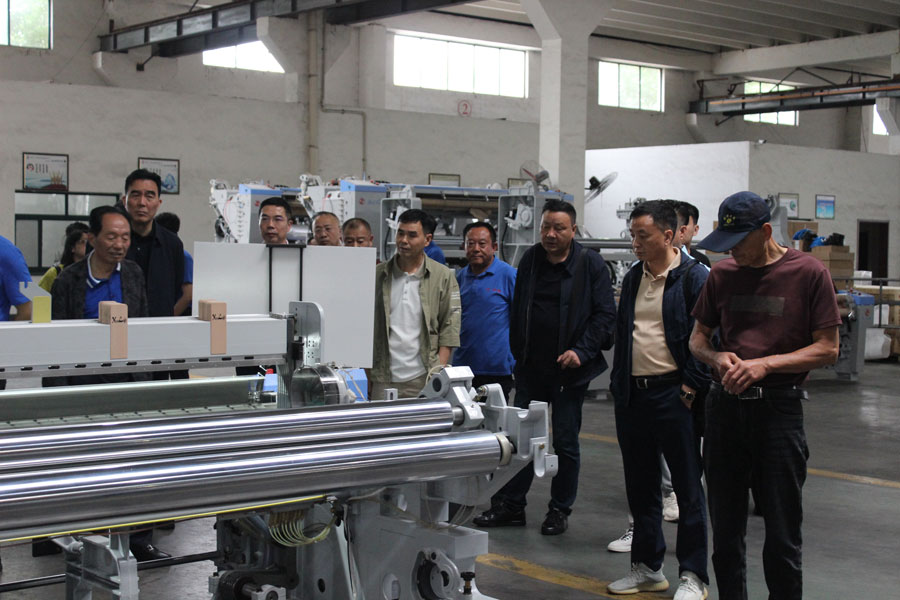 6月14日,為增強(qiáng)織造紡織行業(yè)上下游交流互動(dòng),由盛澤織造商會(huì)榮譽(yù)會(huì)長(zhǎng)吳留生先生、會(huì)長(zhǎng)史連明先生帶隊(duì),商會(huì)監(jiān)事長(zhǎng)、顧問(wèn)、書(shū)記、秘書(shū)長(zhǎng)、常務(wù)副會(huì)長(zhǎng)、副會(huì)長(zhǎng)、監(jiān)事及理事會(huì)員一行50余人蒞臨青島天一紅旗紡機(jī)集團(tuán)有限公司參觀指導(dǎo)。公司董事長(zhǎng)劉培德,銷(xiāo)售總監(jiān)李德勝等領(lǐng)導(dǎo)與商會(huì)來(lái)賓齊聚一堂,共同參觀了天一紅旗先進(jìn)的制造工廠,共敘友誼,齊繪藍(lán)圖。